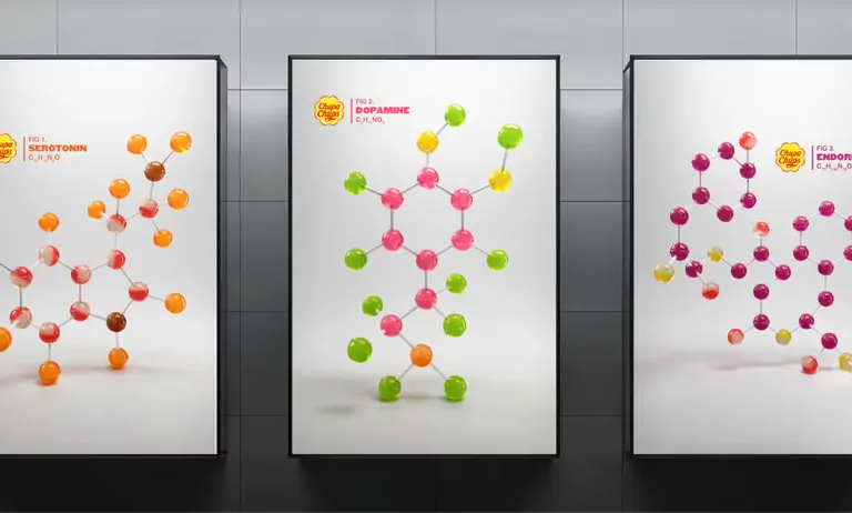 Chupa Chups has launched a new campaign in the UK that mixes creativity with a touch of science. Created by BBH London, the idea is simple and smart: molecular models built from their classic lollipops and sticks. The result? A playful, science-inspired take on what fun is made of.