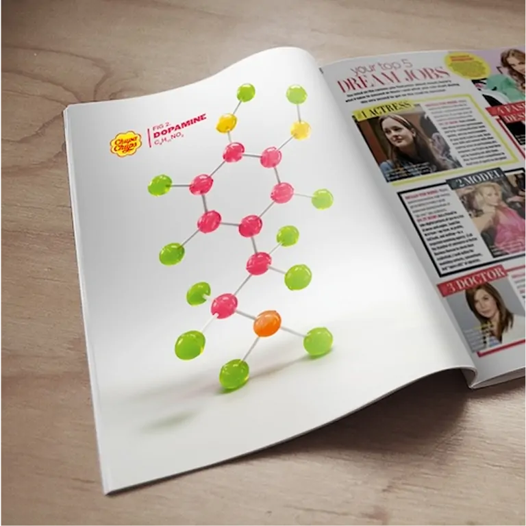 The visuals show molecules of dopamine, serotonin, and endorphins, the “happiness chemicals” - all built from Chupa Chups. It’s a clever way to say that the brand is a timeless source of joy itself. The campaign builds on the brand’s strong visual identity, including its logo designed by Salvador Dalí, and brings it into a new space by turning scientific shapes into something artistic and unexpected in public places.